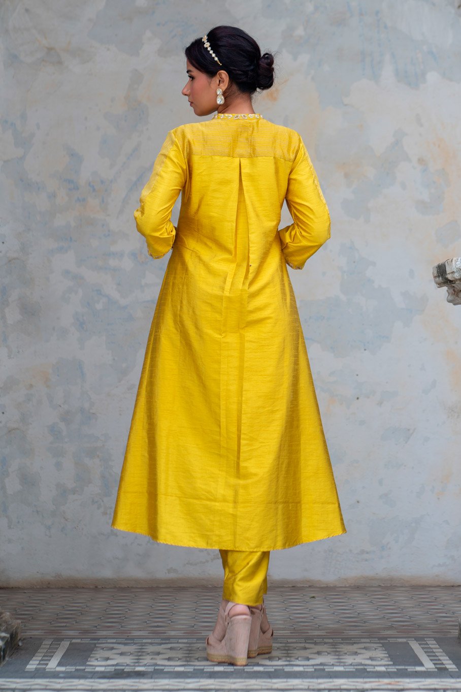 - Design: Acacia Green Asymmetric Embroidered Kurta with Slip and Pant