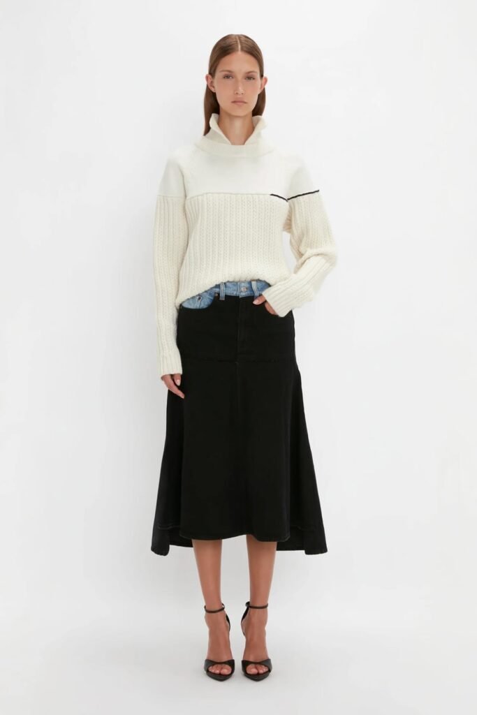 - High neckline complete with ribbed hemline