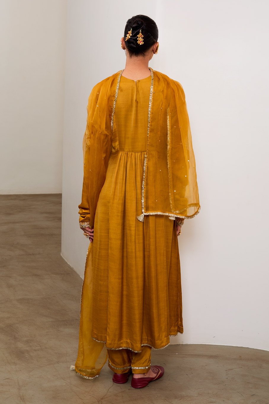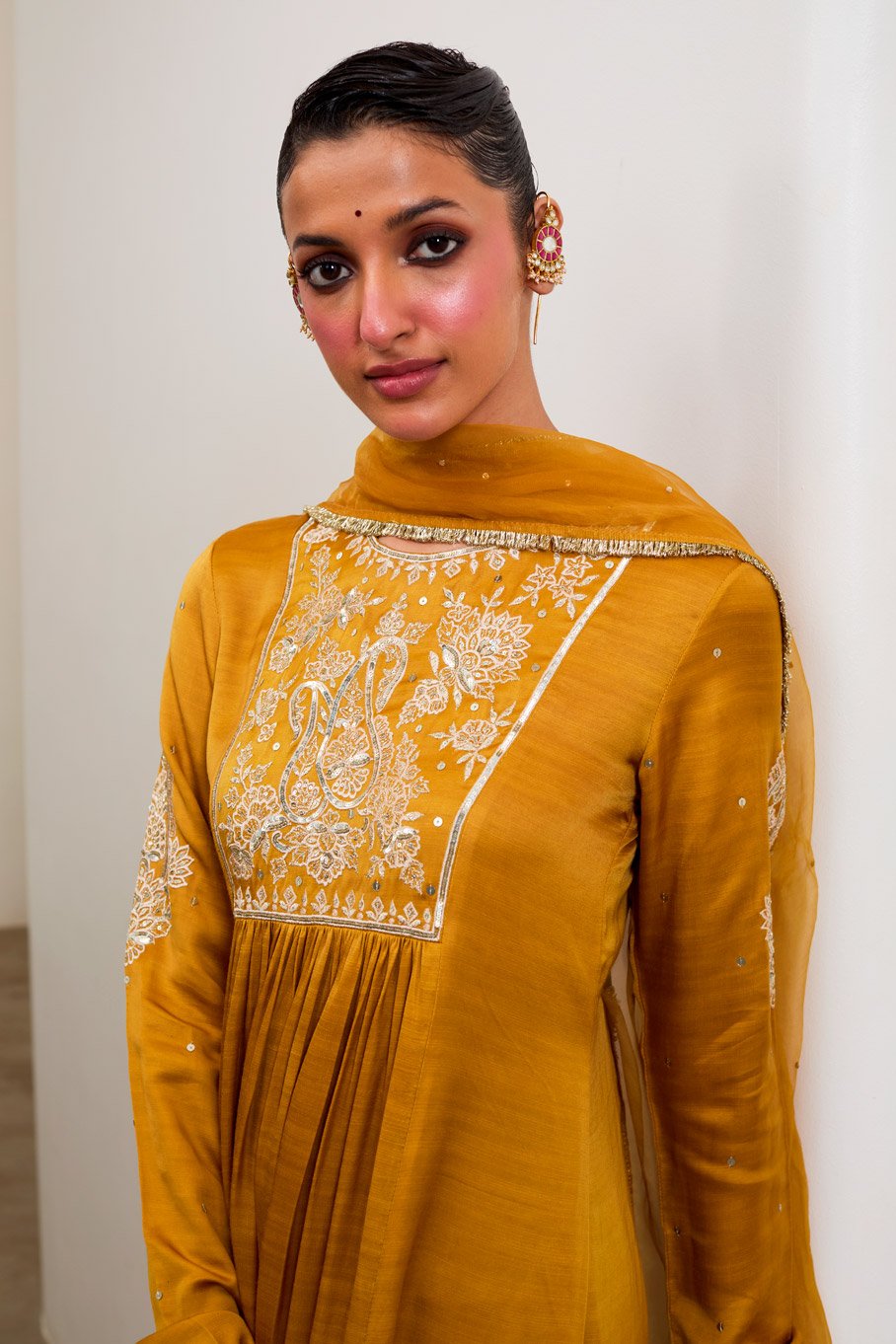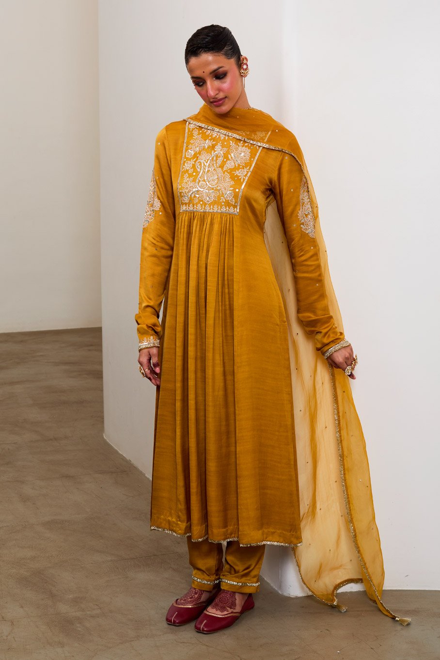 Mustard Silk Embroidered Kurta & Pant with Pure Organza Badla Dupatta