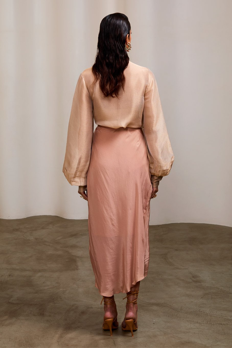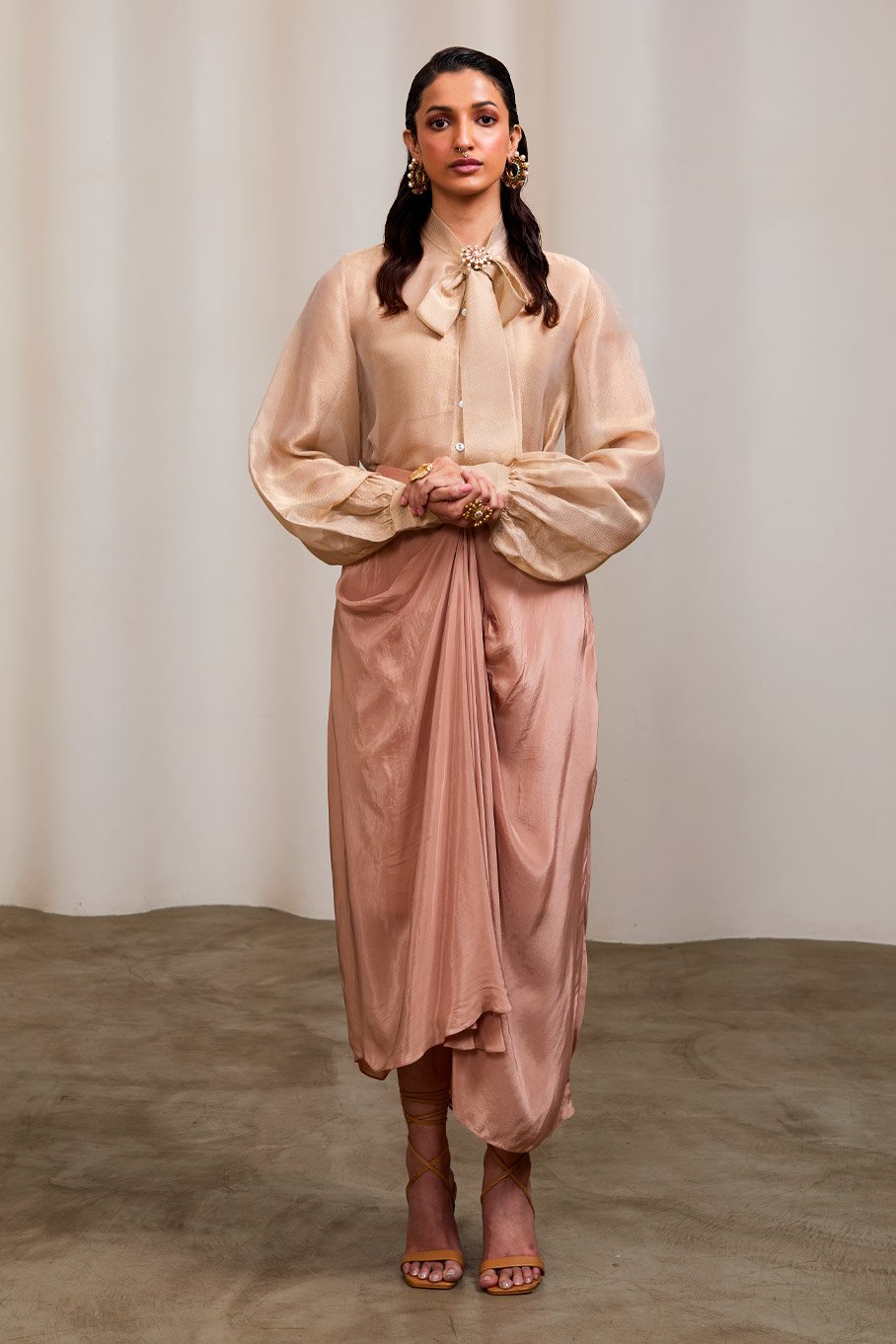 Nude Gold Shirt with Tie Up Skirt