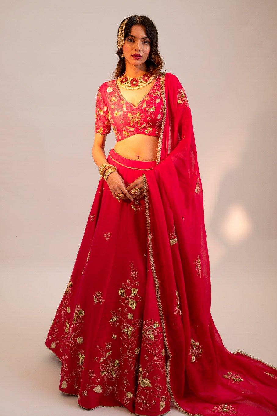 Pink Embroidered Silk Lehanga ,Blouse Paired With Embroidered Organza Dupatta