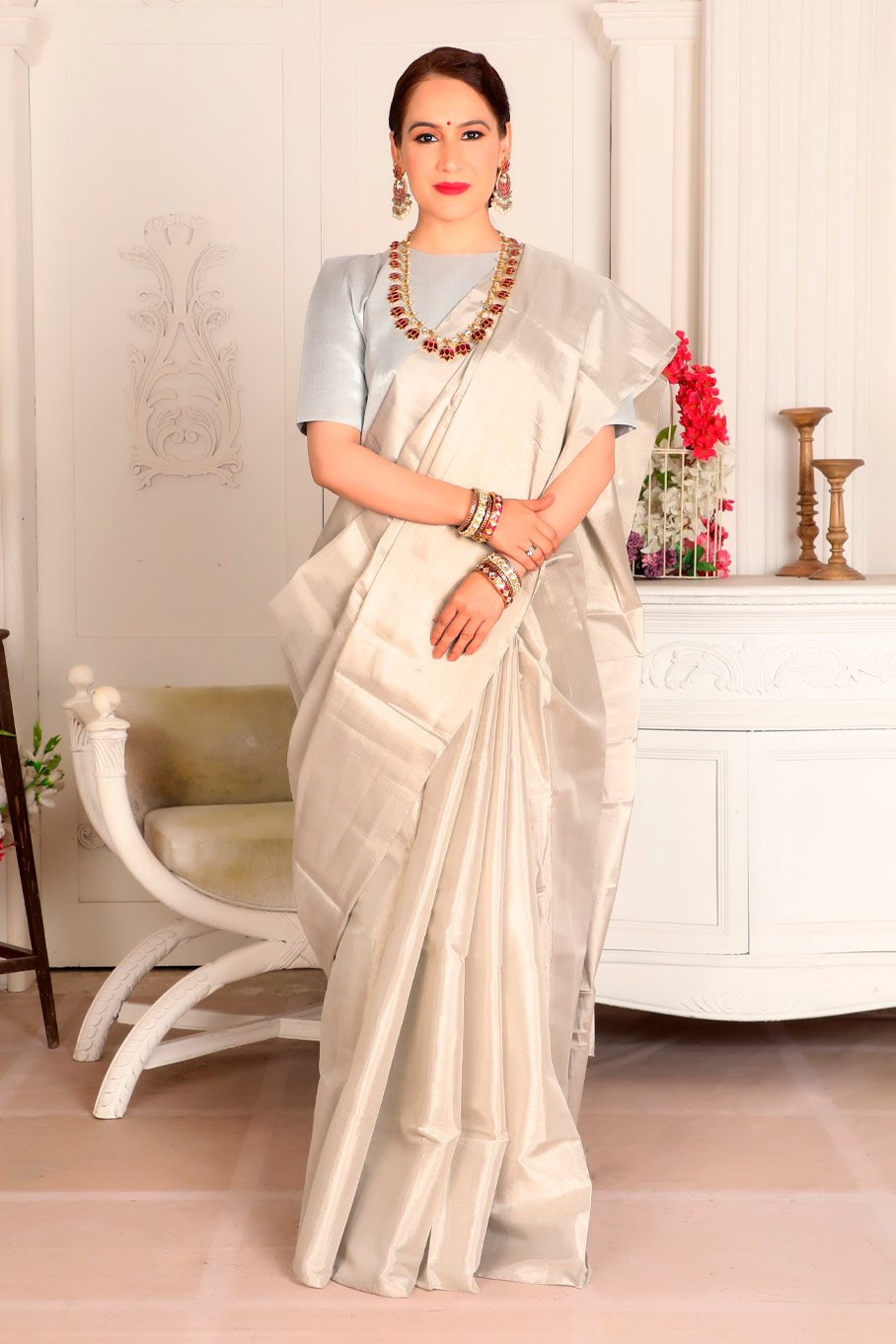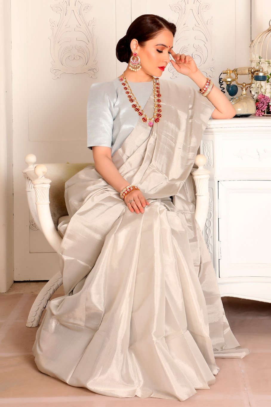- Design: Gold & Silver Half & Half Zari Tissue Saree with Running Blouse Piece