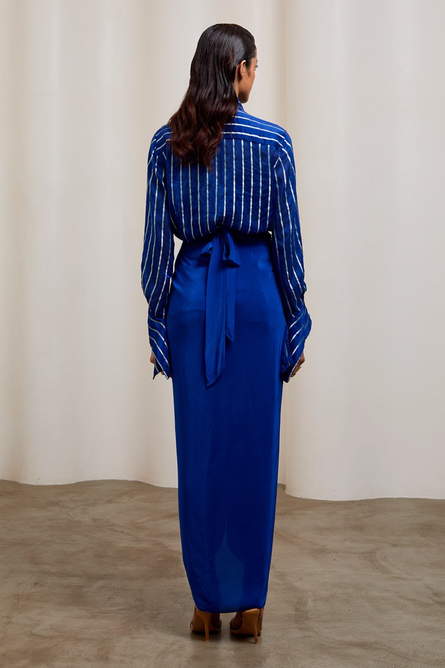 Tiger Print Silk Shirt with Tie-Up Crepe Skirt Set